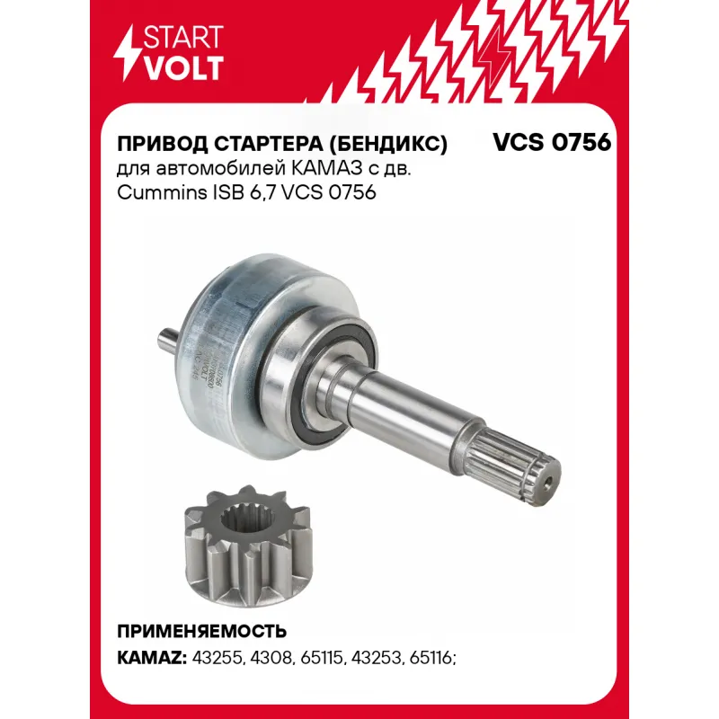 Привод стартера (бендикс) для автомобилей КАМАЗ с дв. Cummins ISB 6,7 VCS 0756 StartVolt