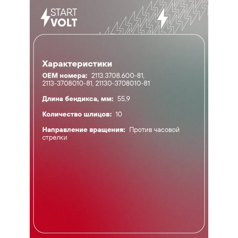 Привод стартера (бендикс) для автомобилей Лада 2108/21099/2113-2115 и модификации (тип АвтоВАЗ) Характеристики: Артикул: VCS 0116 OEM номера: 2113.3708.600-81, 2113-3708010-81, 21130-3708010-81 Направление вращения: против часовой стрелки Внешний диаметр зубьев: 29,4 Число зубьев: 11 Длина бендикса, мм: 55,9 Количество шлицов: 10 Количество на автомобиль: 1 Комплектация: Привод стартера (бендикс) - 1 шт Паспорт изделия/гарантийный талон Гарантия: от 1 года.