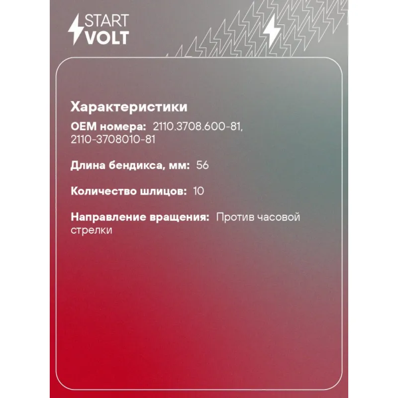 Привод стартера (бендикс) для автомобилей Лада 2110 и модификации н/о (тип АвтоВАЗ) Характеристики: Артикул: VCS 0112 OEM номера: 2110.3708.600-81, 2110-3708010-81 Направление вращения: против часовой стрелки Внешний диаметр зубьев: 25,8 Число зубьев: 9 Длина бендикса, мм: 56 Количество шлицов: 10 Количество на автомобиль: 1 Комплектация: Привод стартера (бендикс) - 1 шт Паспорт изделия/гарантийный талон Гарантия: от 1 года.