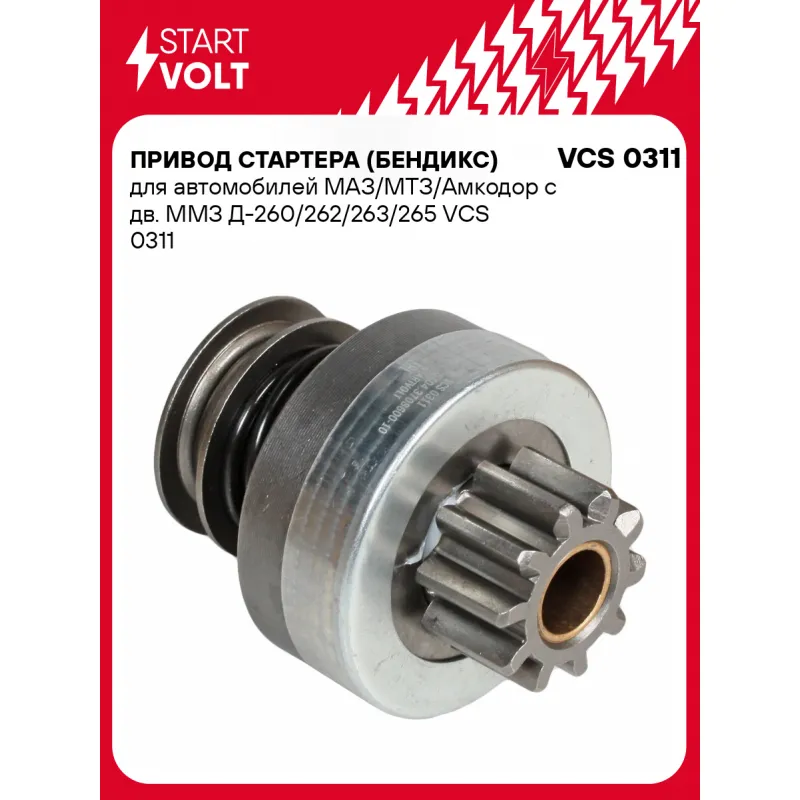 Привод стартера (бендикс) для автомобилей МАЗ/МТЗ/Амкодор с дв. ММЗ Д-260/262/263/265 Характеристики: Артикул: VCS 0311 OEM номера: 5404.3708600-10 Количество на автомобиль: 1 Число зубьев: 10 Внешний диаметр зубьев: 36,2 Направление вращения: по часовой стрелке Длина бендикса, мм: 80 Количество шлицов: 6 Комплектация: Паспорт изделия/гарантийный талон Привод стартера (бендикс) - 1 шт Гарантия: от 1 года.