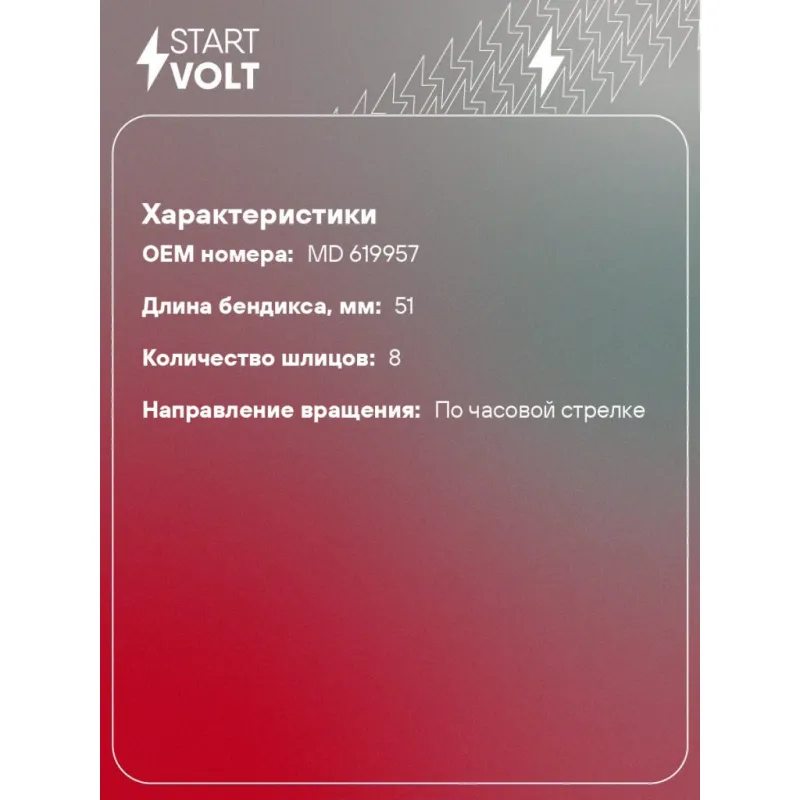 Привод стартера (бендикс) для автомобилей Mitsubishi Lancer IX (06-) 1.8i/2.0i/2.4i Характеристики: Артикул: VCS 1101 OEM номера: MD 619957 Количество на автомобиль: 1 Число зубьев: 8 Внешний диаметр зубьев: 28,4 Направление вращения: по часовой стрелке Длина бендикса, мм: 51 Количество шлицов: 8 Комплектация: Привод стартера (бендикс) - 1 шт Паспорт изделия/гарантийный талон Гарантия: от 1 года.