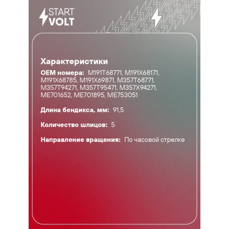 | Длина бендикса, мм | 91,5 |