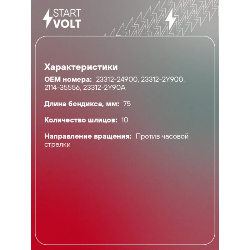 Привод стартера (бендикс) для автомобилей Nissan Maxima (94-) 2.5i/3.0i VCS 1405 StartVolt
