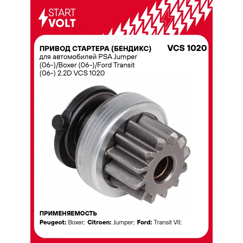 Привод стартера (бендикс) для автомобилей PSA Jumper (06-)/Boxer (06-)/Ford Transit (06-) 2.2D Характеристики: Артикул: VCS 1020 OEM номера: 1 006 209 824, 1 006 210 146, 1 006 210 128, 1 006 209 966 Количество на автомобиль: 1 Число зубьев: 12 Внешний диаметр зубьев: 38,8 Направление вращения: по часовой стрелке Длина бендикса, мм: 58 Количество шлицов: 10 Подходит для авто: Peugeot Boxer (06-) Citroen Jumper (06-) Ford Transit VII (06-) Для проверки применяемости отправьте VIN автомобиля через вкладку "Есть вопросы о товаре?" Комплектация: Паспорт изделия/гарантийный талон Привод стартера (бендикс) - 1 шт Гарантия: от 1 года.