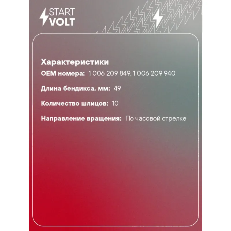 Привод стартера (бендикс) для автомобилей Renault Duster (10-)/Megane II (02-) 2.0i Характеристики: Артикул: VCS 0903 OEM номера: 1 006 209 849, 1 006 209 940 Направление вращения: по часовой стрелке Внешний диаметр зубьев: 29,5 Число зубьев: 11 Длина бендикса, мм: 49 Количество шлицов: 10 Количество на автомобиль: 1 Комплектация: Привод стартера (бендикс) - 1 шт Паспорт изделия/гарантийный талон Гарантия: от 1 года.