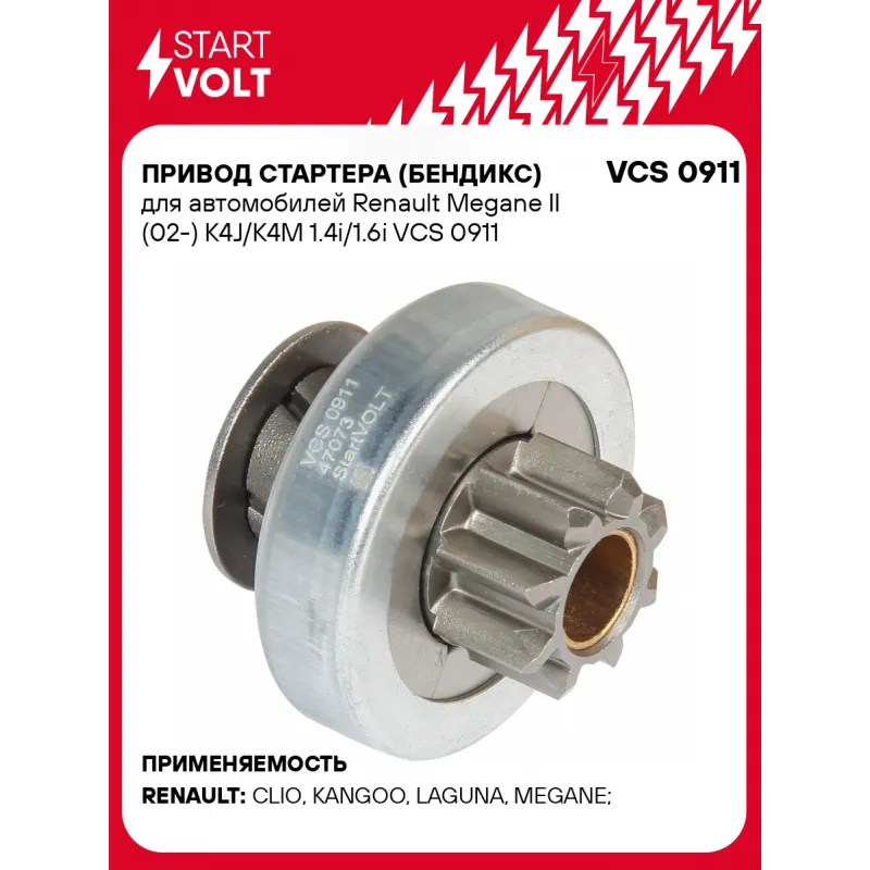 Привод стартера (бендикс) для автомобилей Renault Megane II (02-) K4J/K4M 1.4i/1.6i Характеристики: Артикул: VCS 0911 OEM номера: A0011514713, 0011514713, A0011512473, 0011512473, 11512473, 11514713, 7701207389, 594 436, 93297293 Количество на автомобиль: 1 Число зубьев: 8 Внешний диаметр зубьев: 23,6 Направление вращения: по часовой стрелке Длина бендикса, мм: 41,3 Количество шлицов: 5 Комплектация: Привод стартера (бендикс) - 1 шт Паспорт изделия/гарантийный талон Гарантия: от 1 года.