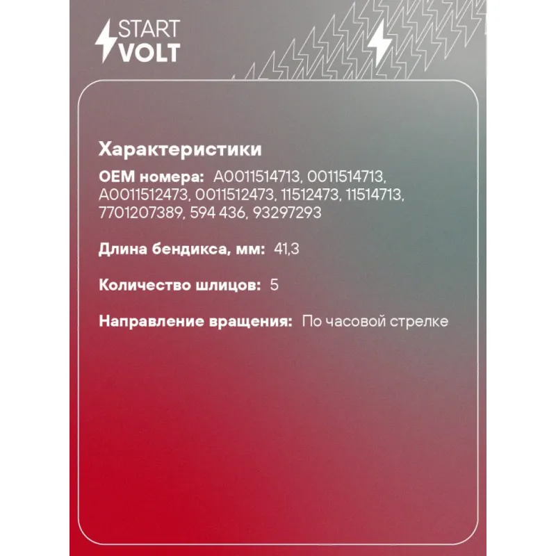 | Длина бендикса, мм | 41,3 |