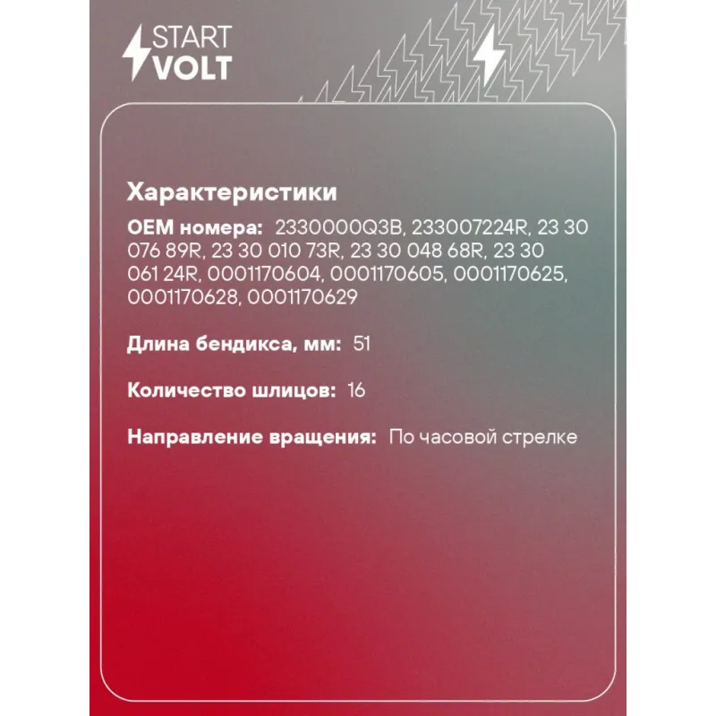 | Длина бендикса, мм | 51 |