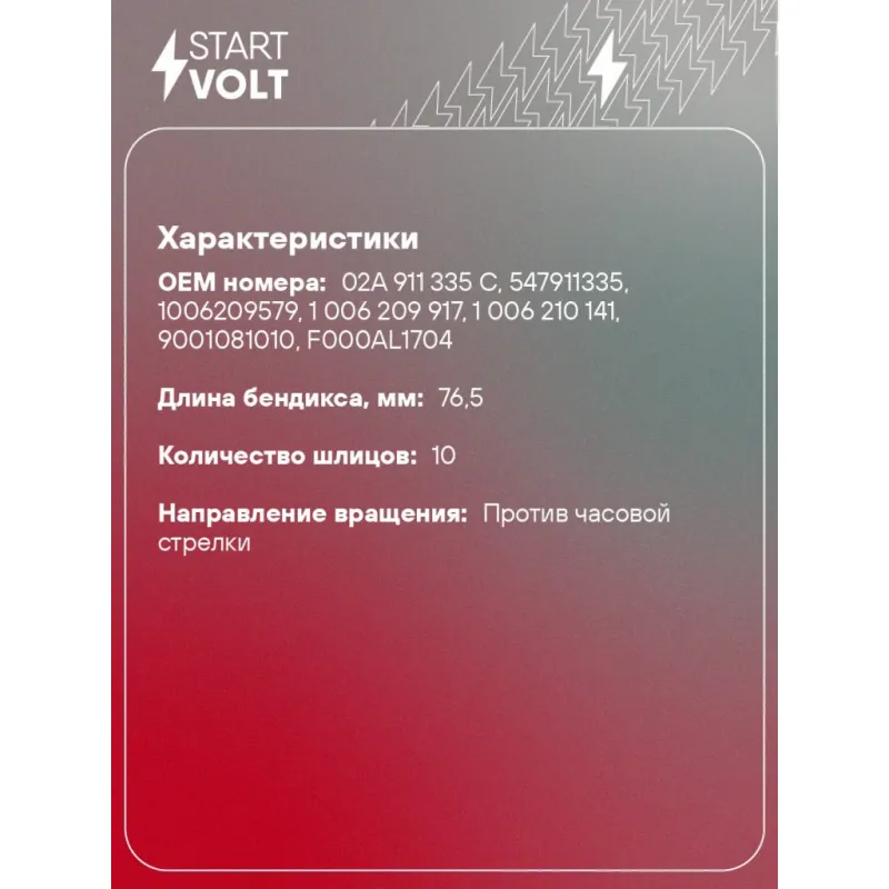 Привод стартера (бендикс) для автомобилей VAG Golf IV (97-)/Octavia (96-) 1.8T/2.0i (тип Bosch) Характеристики: Артикул: VCS 1810 OEM номера: 02A 911 335 C, 547911335, 1006209579, 1 006 209 917, 1 006 210 141, 9001081010, F000AL1704 Направление вращения: против часовой стрелки Внешний диаметр зубьев: 28 Число зубьев: 10 Длина бендикса, мм: 76,5 Количество шлицов: 10 Количество на автомобиль: 1 Комплектация: Паспорт изделия/гарантийный талон Привод стартера (бендикс) - 1 шт Гарантия: от 1 года.