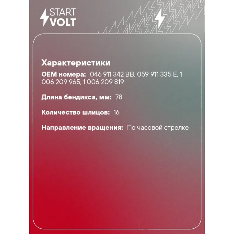 Привод стартера (бендикс) для автомобилей VAG Octavia (04-) 1.4TSI/1.8TSI/2.0FSI Характеристики: Артикул: VCS 1803 OEM номера: 046 911 342 BB, 059 911 335 E, 1 006 209 965, 1 006 209 819 Направление вращения: по часовой стрелке Внешний диаметр зубьев: 28,2 Число зубьев: 9 Длина бендикса, мм: 78 Количество шлицов: 16 Количество на автомобиль: 1 Подходит для авто: Skoda Octavia A5 (04-), Octavia A5 (04-) Для проверки применяемости отправьте VIN автомобиля через вкладку "Есть вопросы о товаре?" Комплектация: Паспорт изделия/гарантийный талон Привод стартера (бендикс) - 1 шт Гарантия: от 1 года.