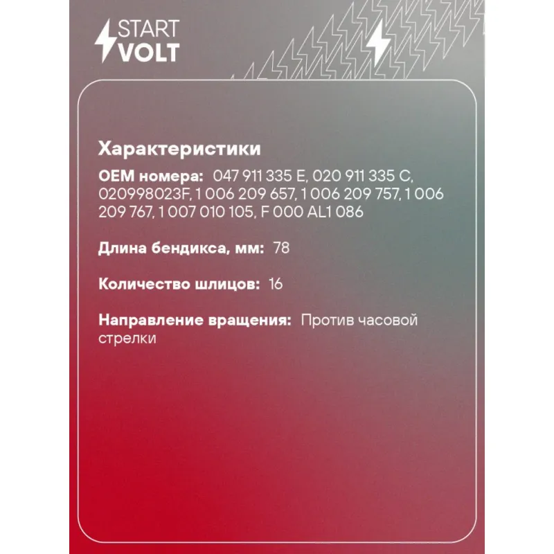 | Длина бендикса, мм | 78 |