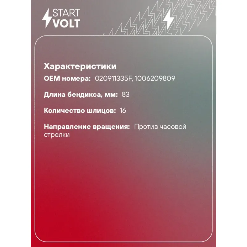 Привод стартера (бендикс) для автомобилей VAG Octavia Tour (96-) 5MT VCS 1816 StartVolt