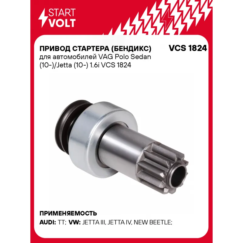 Привод стартера (бендикс) для автомобилей VAG Polo Sedan (10-)/Jetta (10-) 1.6i Характеристики: Артикул: VCS 1824 OEM номера: 02M 911 335 F, 1 006 209 813, 1 006 210 241 Количество на автомобиль: 1 Число зубьев: 10 Внешний диаметр зубьев: 28 Направление вращения: против часовой стрелки Длина бендикса, мм: 88 Количество шлицов: 16 Комплектация: Привод стартера (бендикс) - 1 шт Паспорт изделия/гарантийный талон Гарантия: от 1 года.