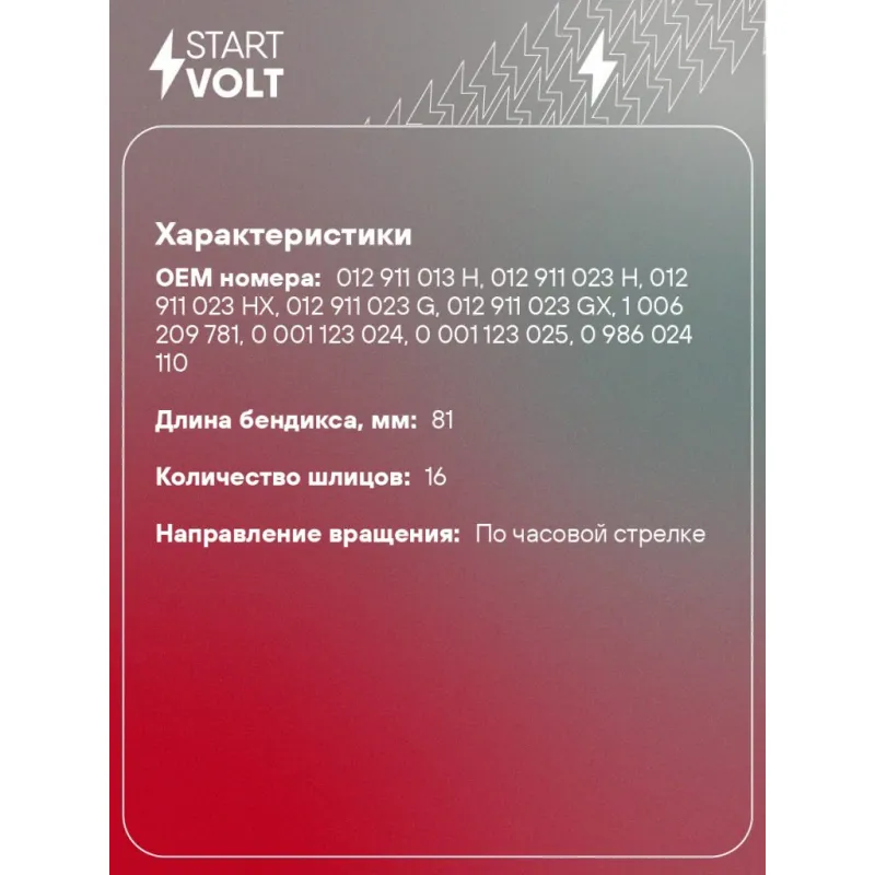 | Длина бендикса, мм | 81 |
