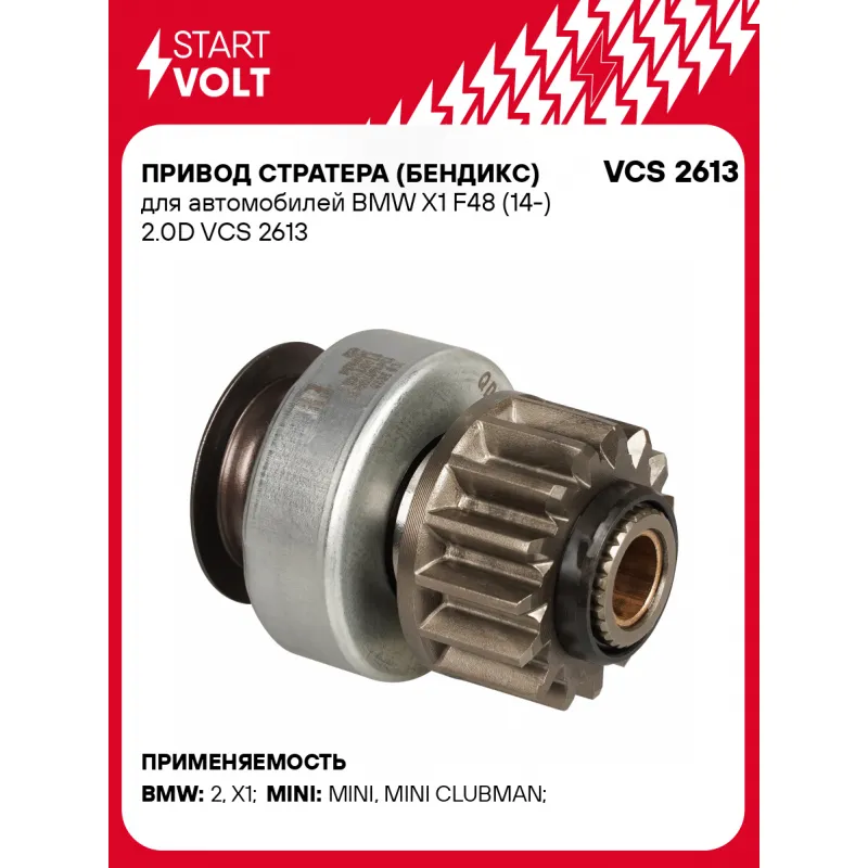 Привод стратера (бендикс) для автомобилей BMW X1 F48 (14-) 2.0D Характеристики: Артикул: VCS 2613 OEM номера: 12418570845, 12417645979, 12417645980, 12418572542, 12418581690, 4380000470, 4380000471, 4380000472, 4380000473, 4380000474, 4380000475, 4380000480, 4380000481, 4380000482, 4380000483 Направление вращения: по часовой стрелке Внешний диаметр зубьев: 38,2 Число зубьев: 15 Длина бендикса, мм: 58,3 Количество шлицов: 10 Количество на автомобиль: 1 Комплектация: Привод стартера (бендикс) - 1 шт Паспорт изделия/гарантийный талон Гарантия: от 1 года.
