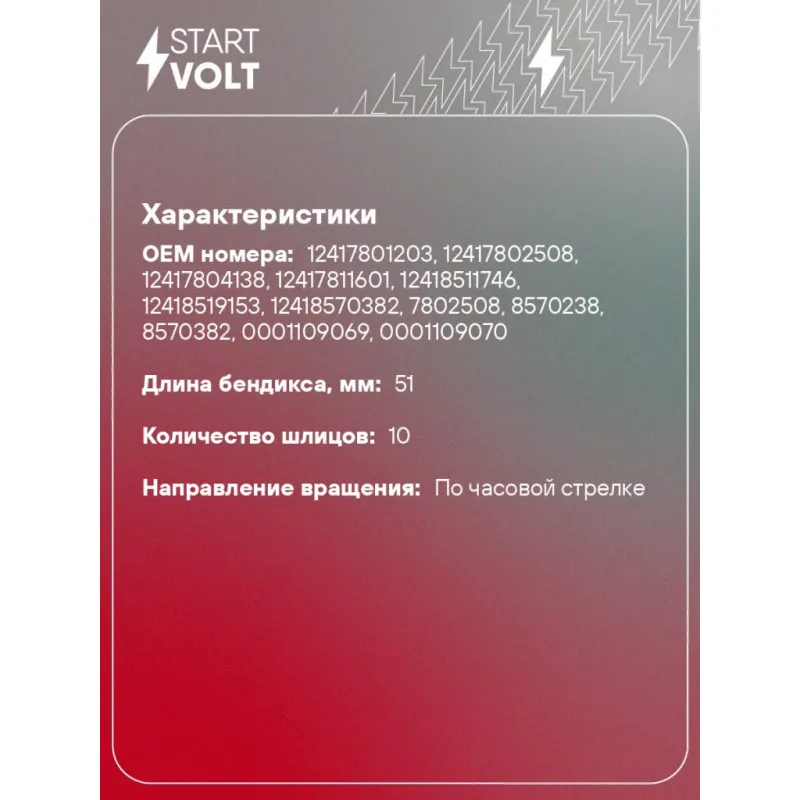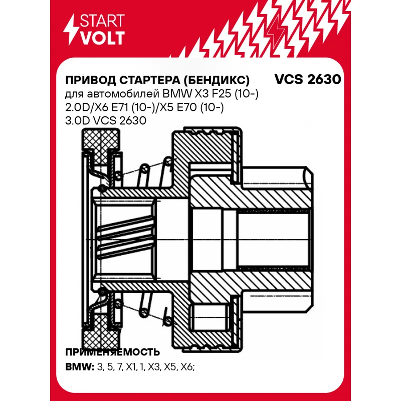 Привод стартера (бендикс) для автомобилей BMW X3 F25 (10-) 2.0D/X6 E71 (10-)/X5 E70 (10-) 3.0D VCS 2630 StartVolt
