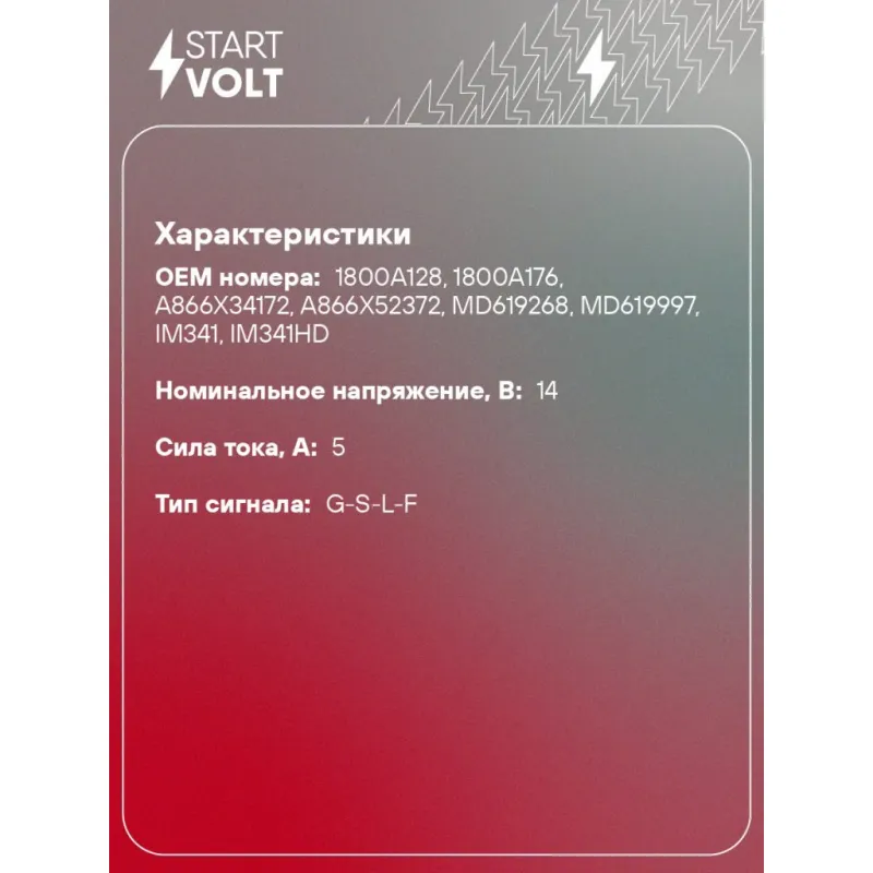 Регулятор напряжения генератора для автомобилей Chery Tiggo T11 (05-) 2.4i/Mitsubishi Carisma (97-) 1.8i (VRR 2705) Характеристики: Артикул: VRR 2705 OEM номера: 1800A128, 1800A176, A866X34172, A866X52372, MD619268, MD619997, IM341, IM341HD Тип сигнала: G-S-L-F Тип питания: Статор Количество на автомобиль: 1 Номинальное напряжение, В: 14 Сила тока, А: 5 Комплектация: Паспорт изделия/гарантийный талон - 1 шт Регулятор напряжения генератора - 1 шт Гарантия: от 1 года.