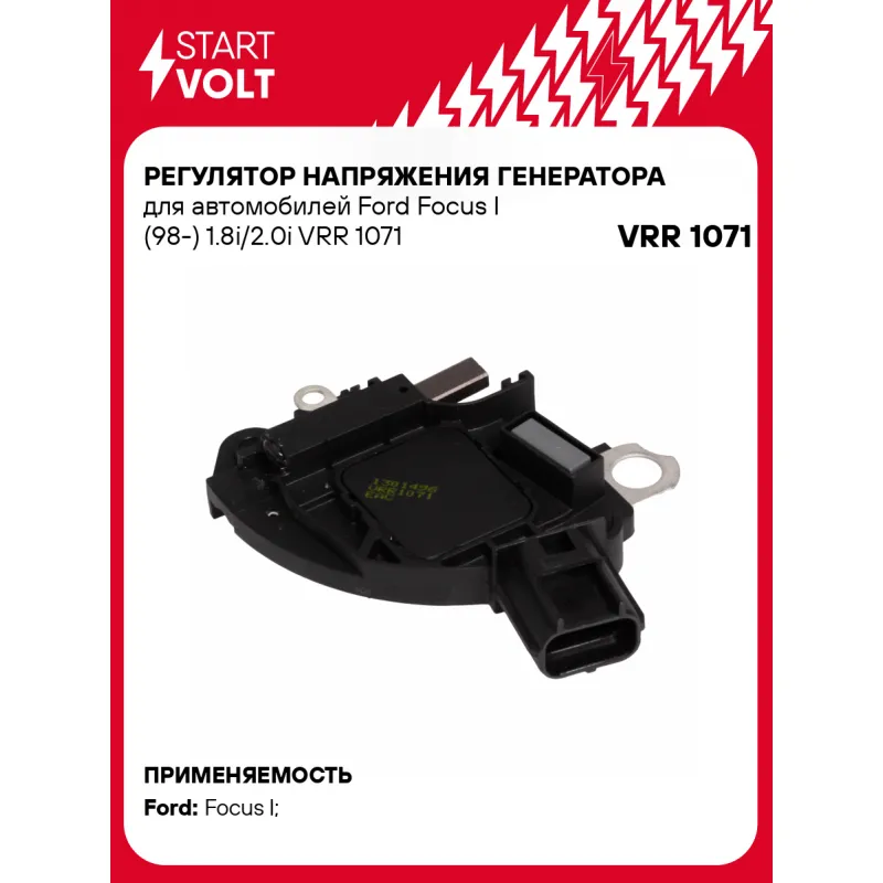 Регулятор напряжения генератора для автомобилей Ford Focus I (98-) 1.8i/2.0i Характеристики: Артикул: VRR 1071 OEM номера: 085582601010, 83627781, 85562541, 85562801, 85582601, AMP0123, 940016012300, IX131, IX131HD Тип питания: Статор Количество на автомобиль: 1 Номинальное напряжение, В: 14 Сила тока, А: 5 Тип сигнала: FR-SIG-A Подходит для авто: Ford Focus I (98-) Для проверки применяемости отправьте VIN автомобиля через вкладку "Есть вопросы о товаре?" Комплектация: Регулятор напряжения генератора - 1 шт Паспорт изделия/гарантийный талон - 1 шт Гарантия: от 1 года.