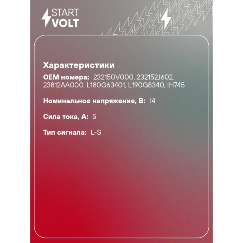 | Номинальное напряжение, В | 14 |