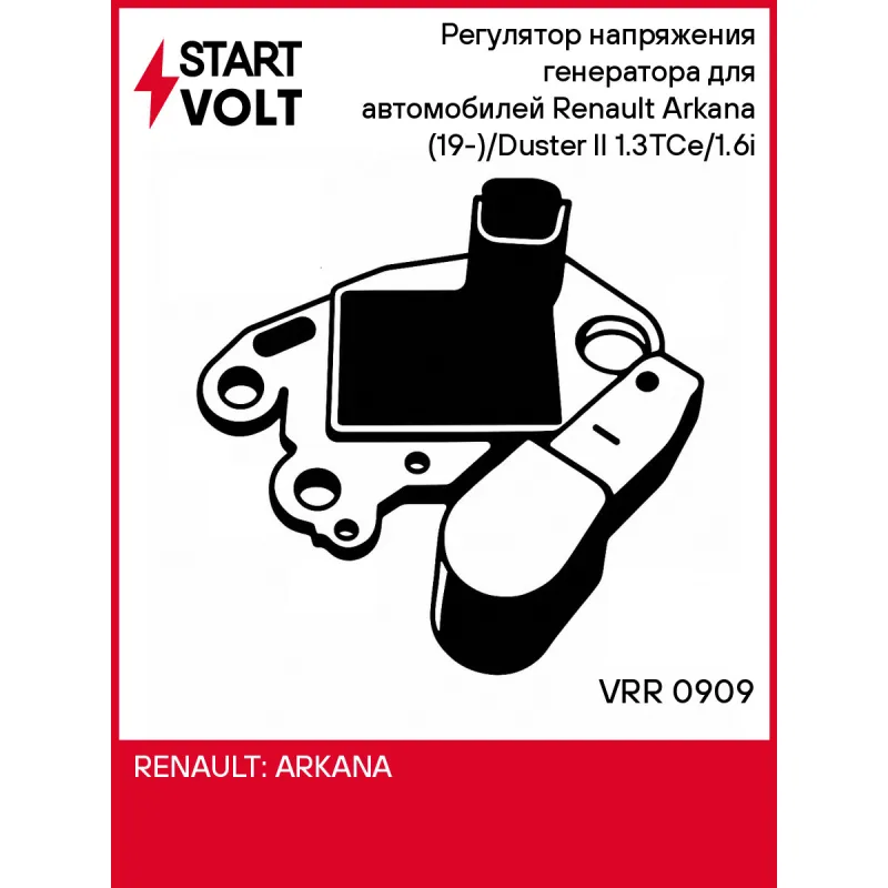Регулятор напряжения генератора для автомобилей Renault Arkana (19-)/Duster II (21-) 1.3TCe/1.6i Характеристики: Артикул: VRR 0909 OEM номера: 599483, M483 Тип сигнала: COM/LIN Тип питания: Статор Количество на автомобиль: 1 IDE код: 33 Скорость сигнала: LMH Номинальное напряжение, В: 14 Сила тока, А: 5 Комплектация: Регулятор напряжения генератора - 1 шт Паспорт изделия/гарантийный талон - 1 шт Гарантия: от 1 года.