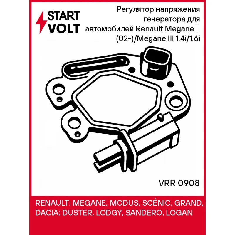 Регулятор напряжения генератора для автомобилей Renault Megane II (02-)/Megane III (08-) 1.4i/1.6i Характеристики: Артикул: VRR 0908 OEM номера: 595379, M379 Тип сигнала: COM/BSS Тип питания: Статор Количество на автомобиль: 1 IDE код: 56 Номинальное напряжение, В: 14 Сила тока, А: 5 Комплектация: Регулятор напряжения генерат... Читать полностью →