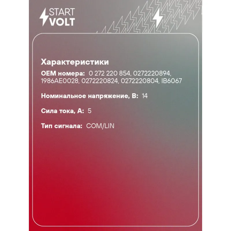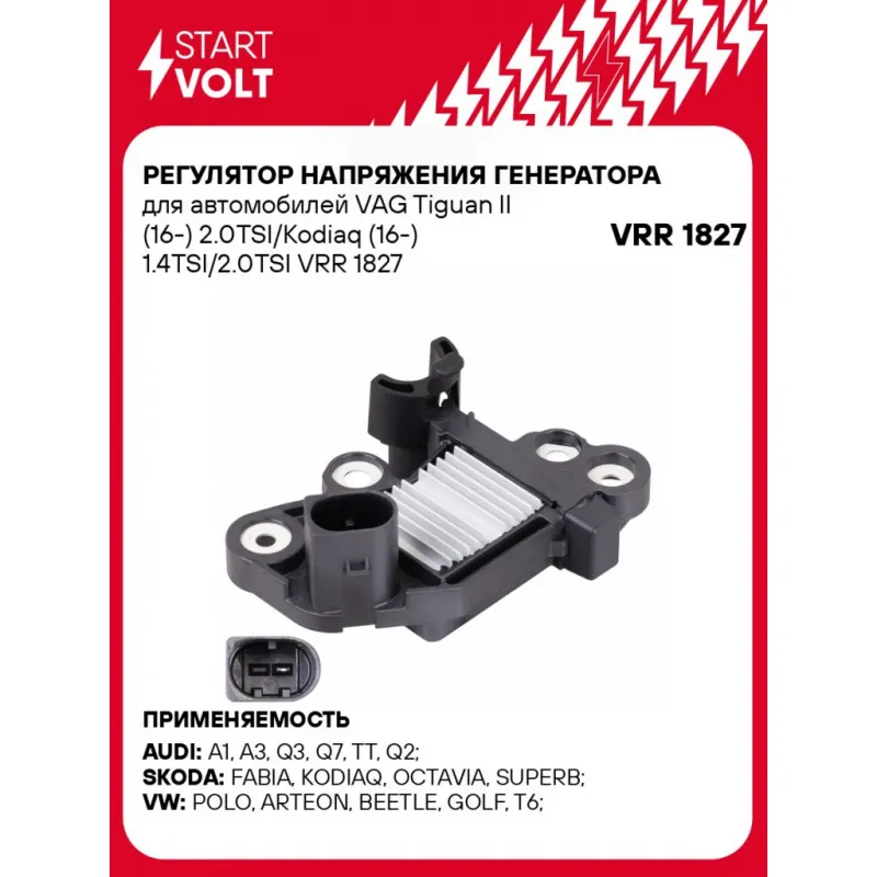 Регулятор напряжения генератора для автомобилей VAG Tiguan II (16-) 2.0TSI/Kodiaq (16-) 1.4TSI/2.0TSI Характеристики: Артикул: VRR 1827 OEM номера: 0 272 220 854, 0272220894, 1986AE0028, 0272220824, 0272220804, IB6067 Тип сигнала: COM/LIN Тип питания: Статор Количество на автомобиль: 1 IDE код: 24 Скорость сигнала: H Номинальное напряжение, В: 14 Сила тока, А: 5 Комплектация: Регулятор напряжения генератора - 1 шт Паспорт изделия/гарантийный талон - 1 шт Гарантия: от 1 года.