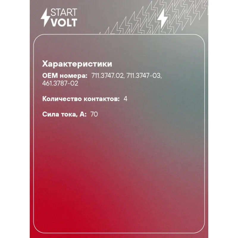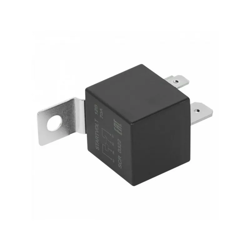 Реле защиты стартера 12V 70A 4 контакта (с кронштейном, без резистора) Характеристики: Артикул: SCR 0322 OEM номера: 711.3747.02, 711.3747-03, 461.3787-02 Количество контактов: 4 Сила тока, А: 70 Номинальное напряpжение, В: 12 Количество на автомобиль: 1 Гарантия: от 1 года.