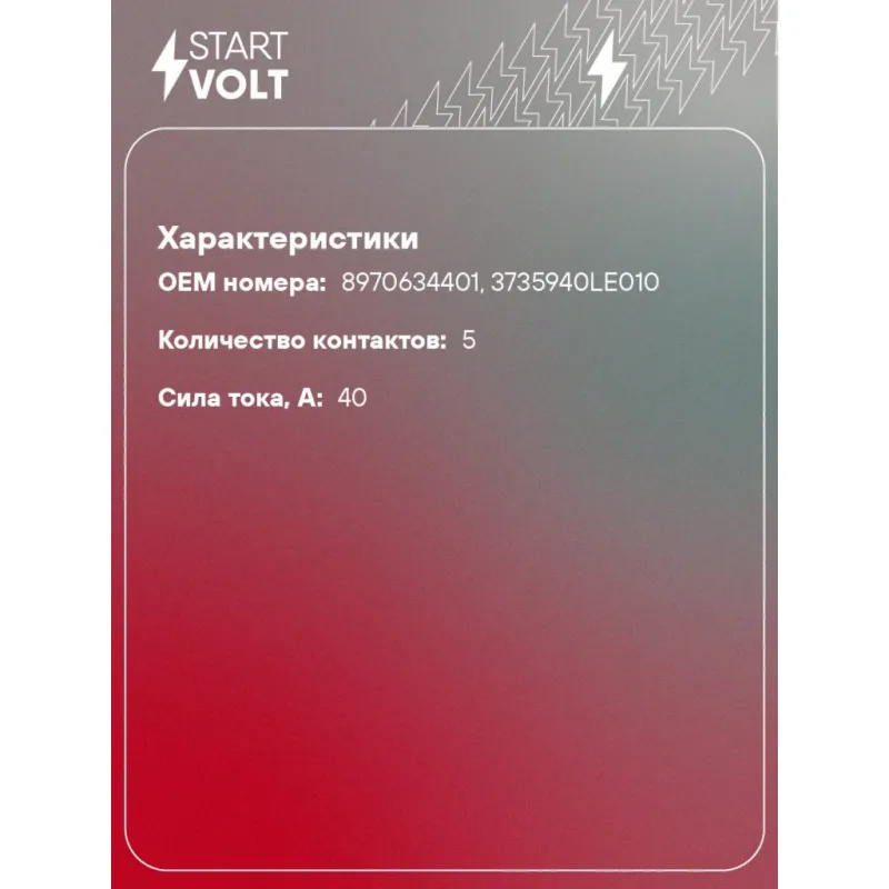 Реле 24V 40A 5 контактов для автомобилей КАМАЗ Компас 5/9 (22-)/JAC Характеристики: Артикул: SCR 0162 OEM номера: 8970634401, 3735940LE010 Количество контактов: 5 Сила тока, А: 40 Номинальное напряpжение, В: 24 Количество на автомобиль: 1 Гарантия: от 1 года.