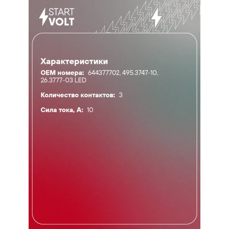 Реле поворота для атомобилей Лада 2108-2110 для LED ламп Характеристики: Артикул: SCR 0124 OEM номера: 644377702, 495.3747-10, 26.3777-03 LED Количество контактов: 3 Номинальное напряpжение, В: 12 Количество на автомобиль: 1 Гарантия: от 1 года.