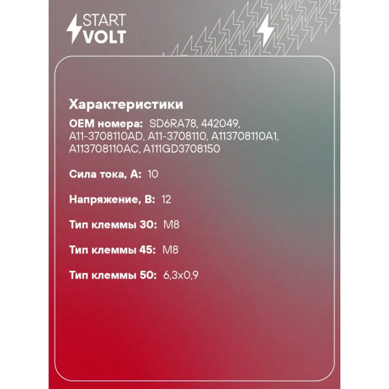 Реле втягивающее стартера для автомобилей Chery Amulet (03-) 1.6i VSR 2709 StartVolt