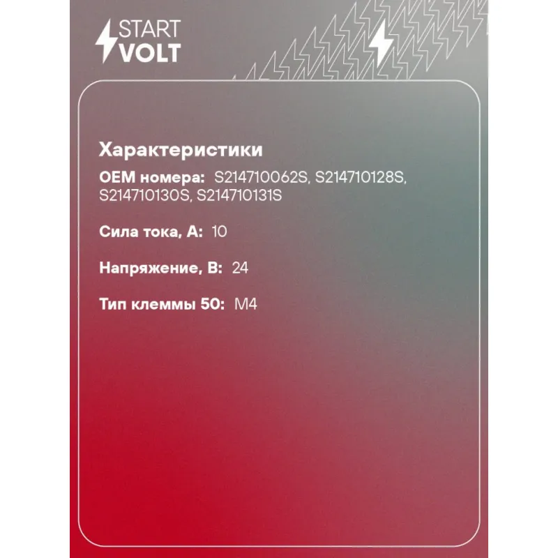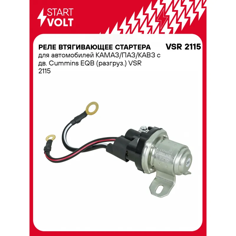 Реле втягивающее стартера для автомобилей КАМАЗ/ПАЗ/КАВЗ с дв. Cummins EQB (разгруз.) Характеристики: Артикул: VSR 2115 OEM номера: S214710062S, S214710128S, S214710130S, S214710131S Сила тока, А: 10 Напряжение, В: 24 Диаметр резьбовых соединений: 48 Тип клеммы 50: M4 Количество на автомобиль: 1 Комплектация: Паспорт изделия/... Читать полностью →