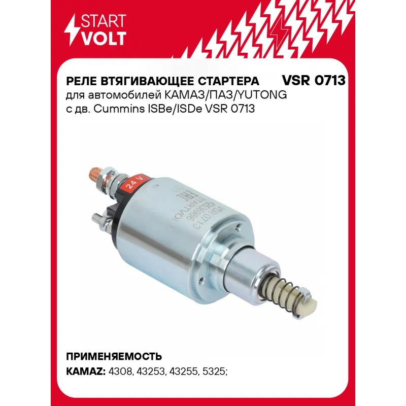 Реле втягивающее стартера для грузовых автомобилей КАМАЗ/ПАЗ/YUTONG STARTVOLT VSR 0713