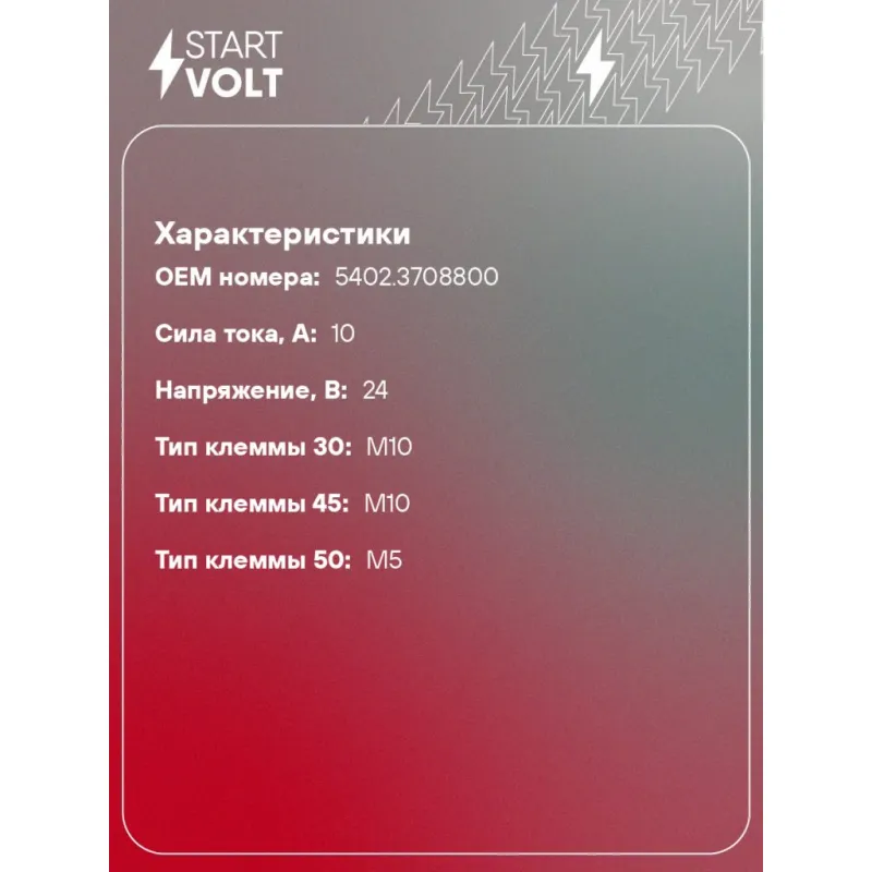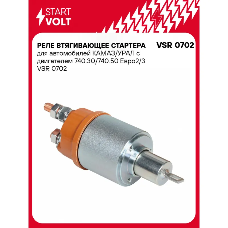 Реле втягивающее стартера для автомобилей КАМАЗ/УРАЛ с двигателем 740.30/740.50 Евро2/3 Характеристики: Артикул: VSR 0702 OEM номера: 5402.3708800 Сила тока, А: 10 Резьба: M6 Напряжение, В: 24 Диаметр резьбовых соединений: 46,5 Тип клеммы 30: M10 Тип клеммы 45: M10 Тип клеммы 50: M5 Количество на автомобиль: 1 Комплектация: П... Читать полностью →