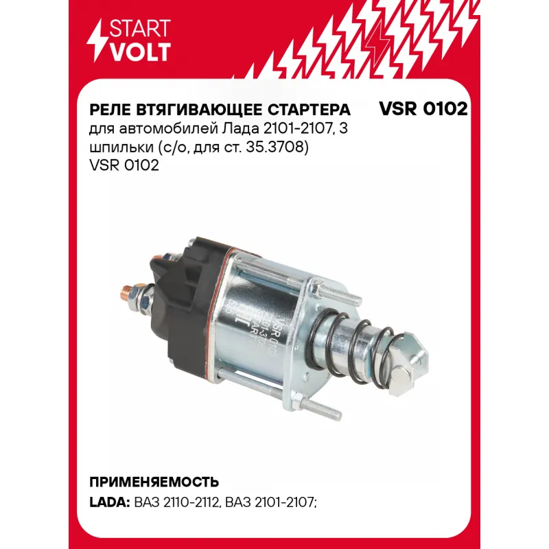 Реле втягивающее стартера для автомобилей Лада 2101-2107, 3 шпильки (с/о, для ст. 35.3708) Характеристики: Артикул: VSR 0102 OEM номера: 4154106, 01.3708, 2101-3708805 Сила тока, А: 10 Резьба: M5 Напряжение, В: 12 Диаметр резьбовых соединений: 61,5 Тип клеммы 30: M8 Тип клеммы 45: M8 Тип клеммы 50: 6,3x0,9 Количество на автомобиль: 1 Комплектация: Реле втягивающее стартера - 1 шт Паспорт изделия/гарантийный талон Гарантия: от 1 года.