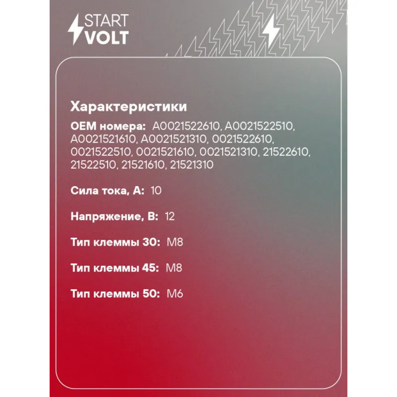 Реле втягивающее стартера для автомобилей Mercedes-Benz C W204 (07-)/E W212 (09-) 1.8T VSR 1520 StartVolt