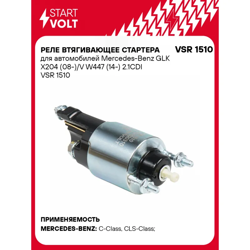 Реле втягивающее стартера для автомобилей Mercedes-Benz GLK X204 (08-)/V W447 (14-) 2.1CDI Характеристики: Артикул: VSR 1510 OEM номера: A0021520310, 0021520310, 21520310 Сила тока, А: 10 Резьба: M6 Напряжение, В: 12 Диаметр резьбовых соединений: 43 Тип клеммы 30: M8 Тип клеммы 45: M8 Тип клеммы 50: M6 Количество на автомобиль: ... Читать полностью →