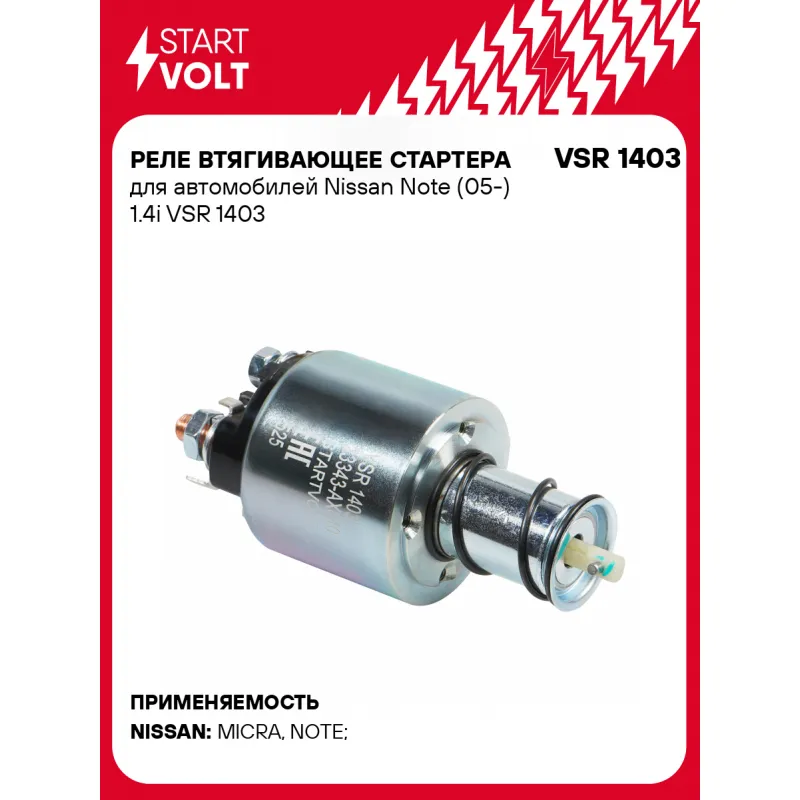 Реле втягивающее стартера для автомобилей Nissan Note (05-) 1.4i Характеристики: Артикул: VSR 1403 OEM номера: 23343-AX010, 23343-AX000, 6611513030, F042011209 Сила тока, А: 10 Резьба: M4 Напряжение, В: 12 Диаметр резьбовых соединений: 39 Тип клеммы 30: M8 Тип клеммы 45: M8 Тип клеммы 50: 6,3x0,8 Количество на автомобиль: 1 Комплектация: Паспорт изделия/гарантийный талон Реле втягивающее стартера - 1 шт Гарантия: от 1 года.