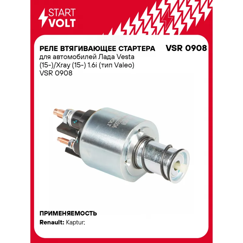 Реле втягивающее стартера для автомобилей Лада Vesta (15-)/Xray (15-) 1.6i (тип Valeo) Характеристики: Артикул: VSR 0908 OEM номера: 595776 Сила тока, А: 10 Резьба: M4 Напряжение, В: 12 Диаметр резьбовых соединений: 39 Тип клеммы 30: M8 Тип клеммы 45: M8 Тип клеммы 50: M5 Количество на автомобиль: 1 Подходит для авто: Renault Kaptur (16-) Для проверки применяемости отправьте VIN автомобиля через вкладку "Есть вопросы о товаре?" Комплектация: Паспорт изделия/гарантийный талон Реле втягивающее стартера - 1 шт Гарантия: от 1 года.