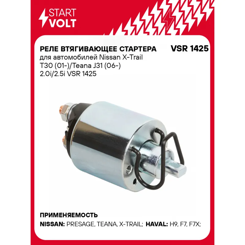Реле втягивающее стартера для автомобилей Nissan X-Trail T30 (01-)/Teana J31 (06-) 2.0i/2.5i Характеристики: Артикул: VSR 1425 OEM номера: 233438H300, 233438H30A, 211437617 Сила тока, А: 10 Резьба: M6 Напряжение, В: 12 Диаметр резьбовых соединений: 38 Тип клеммы 30: M8 Тип клеммы 45: M8 Тип клеммы 50: 6,3x0,9 Количество на автом... Читать полностью →
