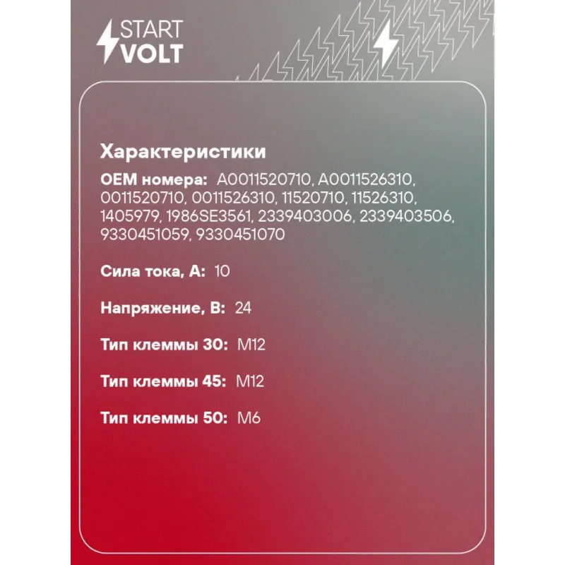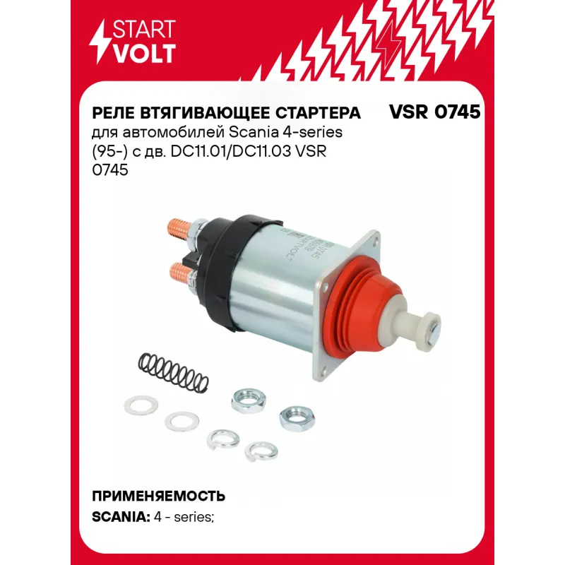 Реле втягивающее стартера для автомобилей Scania 4-series (95-) с дв. DC11.01/DC11.03 Характеристики: Артикул: VSR 0745 OEM номера: A0011520710, A0011526310, 0011520710, 0011526310, 11520710, 11526310, 1405979, 1986SE3561, 2339403006, 2339403506, 9330451059, 9330451070, 9330451071, 19070191 Сила тока, А: 10 Резьба: null Напряжение, В: 24 Диаметр резьбовых соединений: 82 Тип клеммы 30: M12 Тип клеммы 45: M12 Тип клеммы 50: M6 Количество на автомобиль: 1 Комплектация: Паспорт изделия/гарантийный талон Реле втягивающее стартера - 1 шт Гарантия: от 1 года.