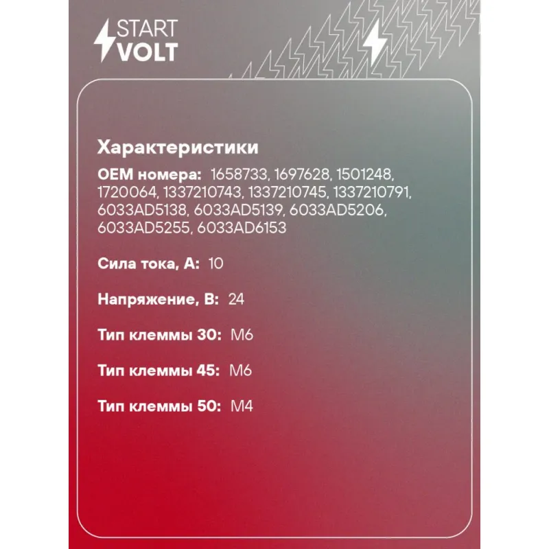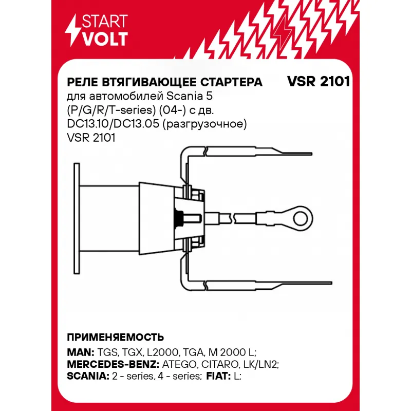 Реле втягивающее стартера для автомобилей Scania 5 (P/G/R/T-series) (04-) с дв. DC13.10/DС13.05 (разгрузочное) VSR 2101 StartVolt