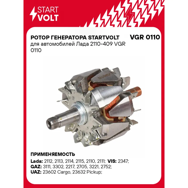 Ротор генератора STARTVOLT для автомобилей Лада 2110-409 Характеристики: Артикул: VGR 0110 OEM номера: 2110-3701200-СВ Количество на автомобиль: 1 Номинальное напряжение, В: 14 Сопротивление обмотки возбуждения: 2,4-2,6 Наружный диаметр, мм: 98,4 Подходит для авто: ВАЗ 2112, 2113, 2114, 2115, 2110, 2111, Priora (07-) VIS 2347, 2347 ГАЗ 3111, 3302, 2217, 2705, 3221, 2752, 3102, 3110, 31105 УАЗ 23602 Cargo (08-), 23632 Pickup (08-), 315195, 3160 (97-), 3162 (00-), 3162 (00-), 3163 (Patriot) (05-) Для проверки применяемости отправьте VIN автомобиля через вкладку "Есть вопросы о товаре?" Комплектация: Ротор генератора - 1 шт Паспорт изделия/гарантийный талон - 1 шт Гарантия: от 1 года.