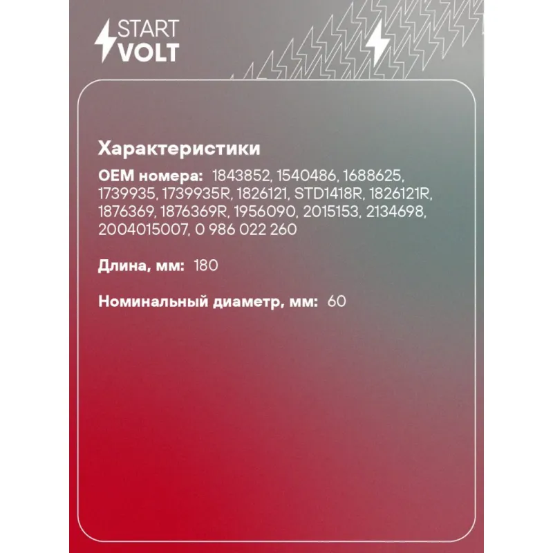 Ротор стартера для автомобилей DAF XF 105 (09-) с дв. MX300/MX340 Характеристики: Артикул: SR 2801 OEM номера: 1843852, 1540486, 1688625, 1739935, 1739935R, 1826121, STD1418R, 1826121R, 1876369, 1876369R, 1956090, 2015153, 2134698, 2004015007, 0 986 022 260, 0 001 261 012, 0 001 261 085, 0 001 241 006, 0 001 241 015, 0 001 261 069, 0 001 261 070, 0 001 241 020, 0 001 261 007, 0 001 261 008, 0 001 261 013, 0 001 261 044, 0 001 261 045, 1667425 Количество зубьев: 13 Длина, мм: 180 Номинальный диаметр, мм: 60 Количество на автомобиль: 1 Комплектация: Ротор стартера - 1 шт Паспорт изделия/гарантийный талон Гарантия: от 1 года.