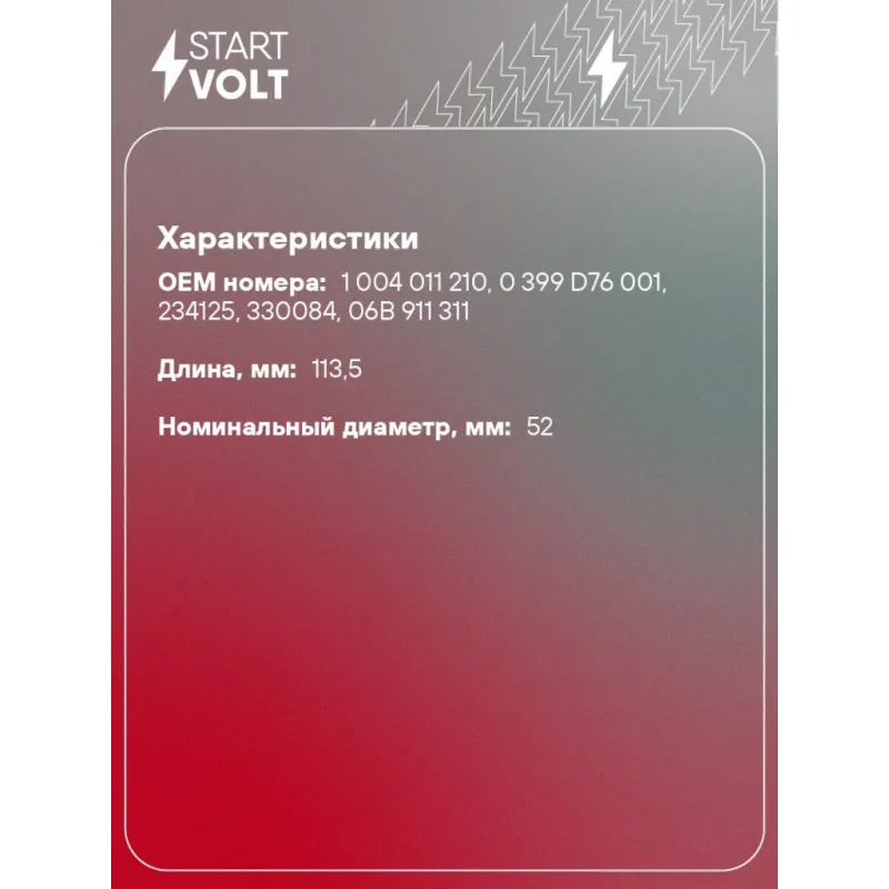 | Количество на автомобиль | 1 |
