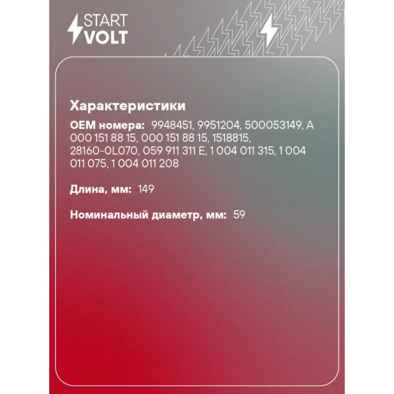 Ротор стартера для автомобилей Ford Transit (06-) 2.2D Характеристики: Артикул: SR 1020 OEM номера: 9948451, 9951204, 500053149, A 000 151 88 15, 000 151 88 15, 1518815, 28160-0L070, 059 911 311 E, 1 004 011 315, 1 004 011 075, 1 004 011 208, 1 004 211 221, 230371, 333409, 333411 Количество на автомобиль: 1 Количество зубьев: 11 Номинальный диаметр, мм: 59 Длина, мм: 149 Комплектация: Ротор стартера - 1 шт Паспорт изделия/гарантийный талон Гарантия: от 1 года.