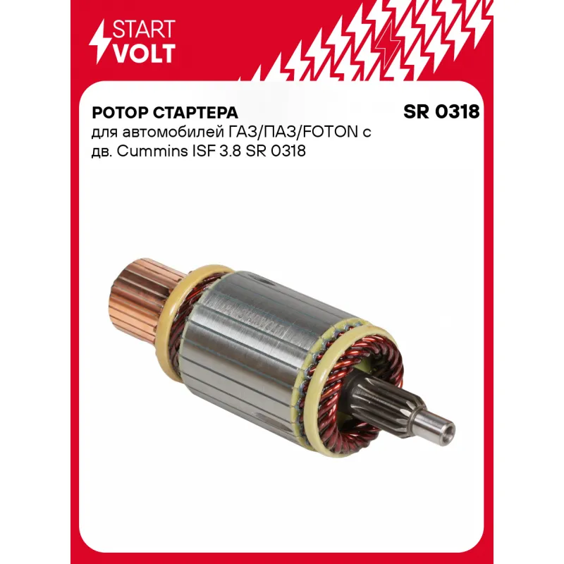 Ротор стартера для автомобилей ГАЗ/ПАЗ/FOTON c дв. Cummins ISF 3.8 Характеристики: Артикул: SR 0318 OEM номера: 371323, 1811210650, 1811210750, 51262030011, M105X43671, M106X43672, ME701446, ME753010, 23310Z9007, XJAF00512, 1275950 Количество зубьев: 13 Длина, мм: 171 Номинальный диаметр, мм: 52 Количество на автомобиль: 1 Комплектация: Паспорт изделия/гарантийный талон Ротор стартера - 1 шт Гарантия: от 1 года.
