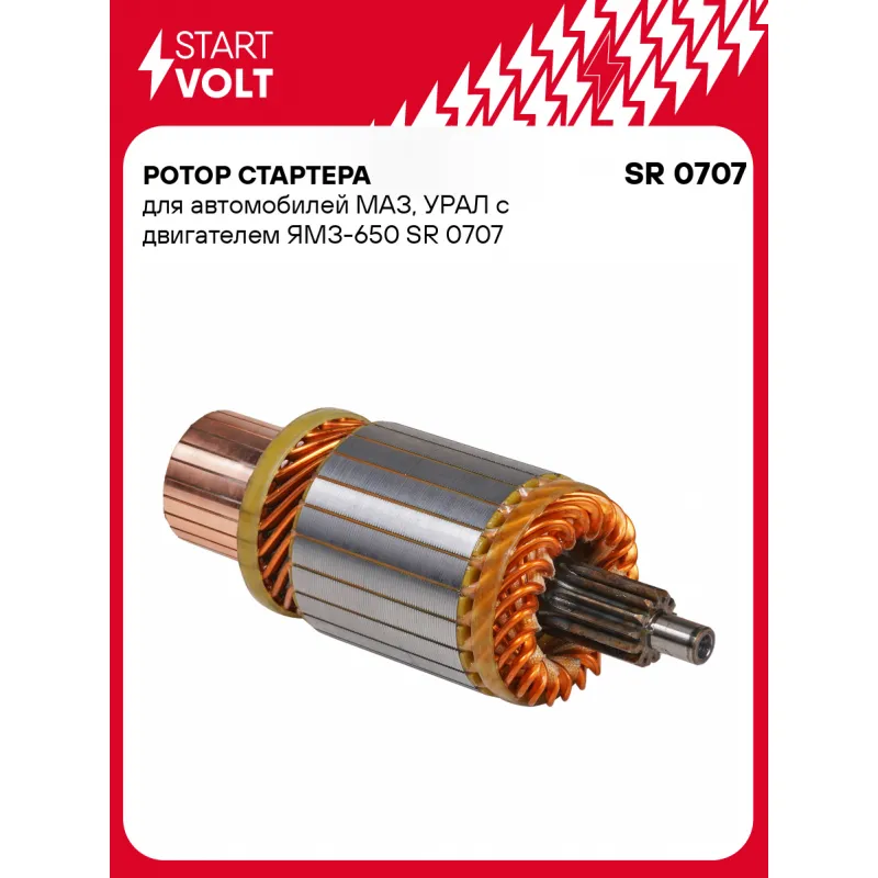 Ротор стартера для автомобилей МАЗ, УРАЛ с двигателем ЯМЗ-650 Характеристики: Артикул: SR 0707 OEM номера: 51262030007, 5001857624, 20486513 Количество зубьев: 13 Длина, мм: 176,5 Номинальный диаметр, мм: 60,6 Количество на автомобиль: 1 Комплектация: Паспорт изделия/гарантийный талон Ротор стартера - 1 шт Гарантия: от 1 года.