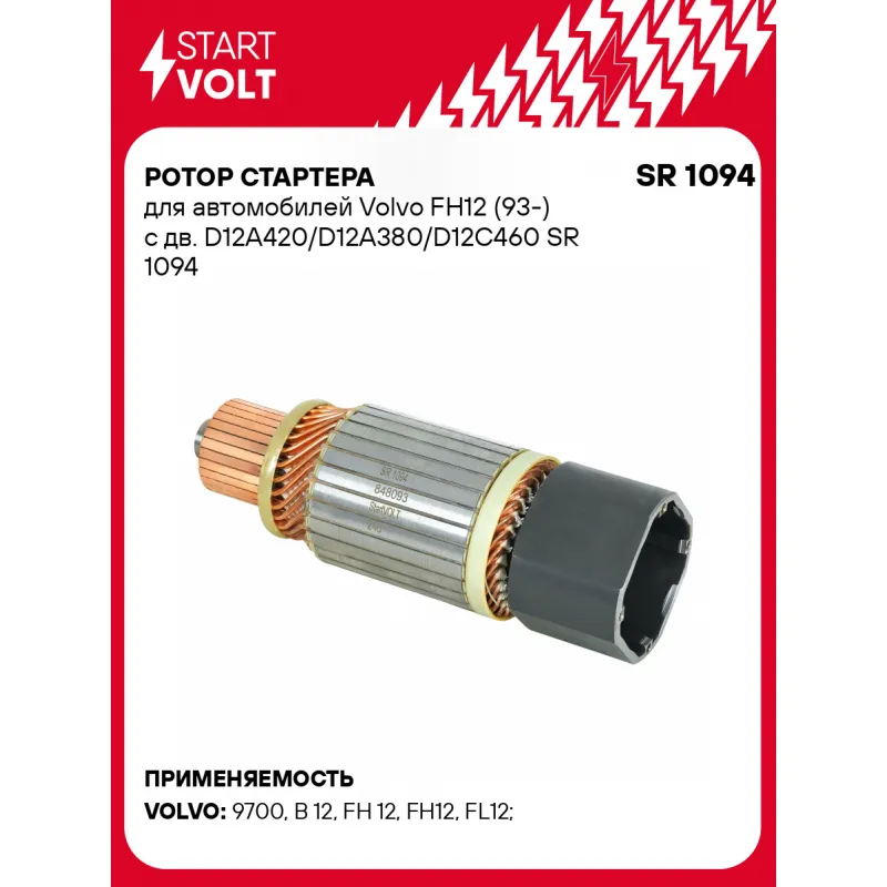 Ротор стартера для автомобилей Volvo FH12 (93-) с дв. D12A420/D12A380/D12C460 Характеристики: Артикул: SR 1094 OEM номера: 8121267, 5001824503, 8121267, 81262036019, 353381, 848093, 2004005023, 2004005024, 2004005074, 5000816636, 5000824503, 0013000, 8691510066 Количество зубьев: null Длина, мм: 255 Номинальный диаметр, мм: 83 Количество на автомобиль: 1 Комплектация: Ротор стартера - 1 шт Паспорт изделия/гарантийный талон Гарантия: от 1 года.