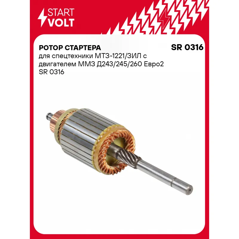 Ротор стартера для спецтехники МТЗ-1221/ЗИЛ с двигателем ММЗ Д243/245/260 Евро2 Характеристики: Артикул: SR 0316 OEM номера: 7402.3708200 Количество зубьев: 12 Длина, мм: 302,5 Номинальный диаметр, мм: 77,5 Количество на автомобиль: 1 Комплектация: Паспорт изделия/гарантийный талон Ротор стартера - 1 шт Гарантия: от 1 года.