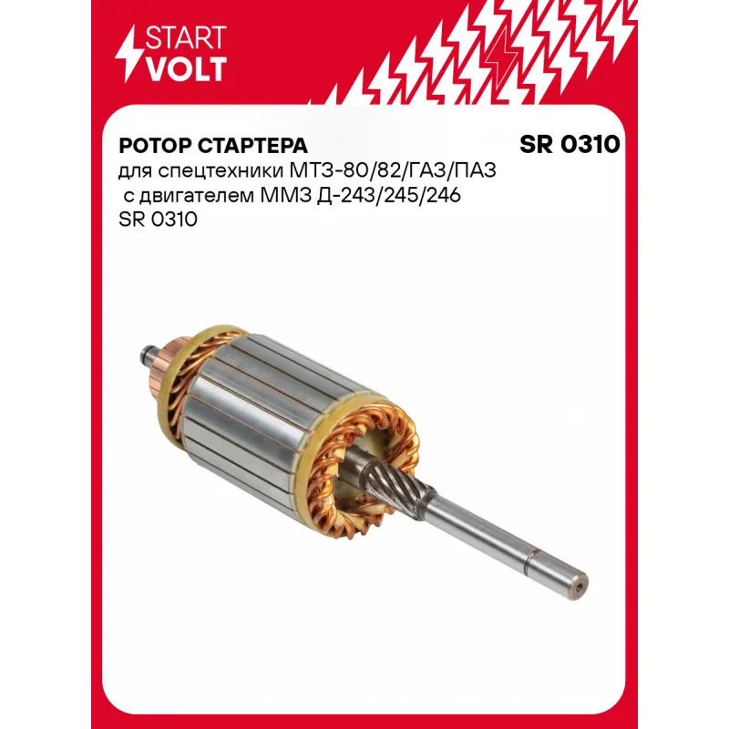 Ротор стартера для спецтехники МТЗ-80/82/ГАЗ/ПАЗ с двигателем ММЗ Д-243/245/246 Характеристики: Артикул: SR 0310 OEM номера: 74.3708200 Количество зубьев: 12 Длина, мм: 316 Номинальный диаметр, мм: 77,6 Количество на автомобиль: 1 Комплектация: Паспорт изделия/гарантийный талон Ротор стартера - 1 шт Гарантия: от 1 года.